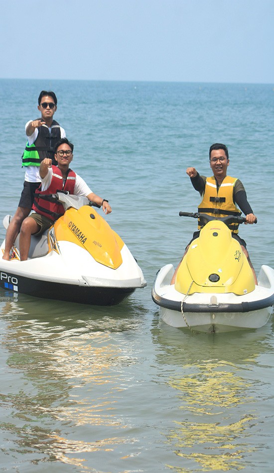 Jetski merupakan permainan kendaran air yang di gerakan oleh baling-baling yang berada di bawah body, menggunakan kendaraan jetski sama seperti motor matic, tinggal gas seperti layaknya mengendarai motor di jalan raya tapi Anda harus berhati-hati karena Jetski tidak memiliki rem jadi harus jaga jarak yang jauh dengan kendaran yang lain, maksimal penumpang Jetski dua orang untuk Anda dan satu pemandu.
